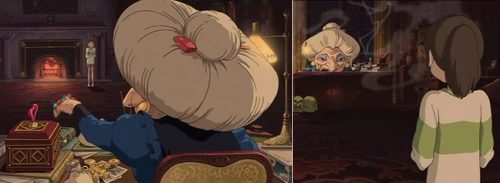 Hayao Miyazaki hat Chihiros Reise ins Zauberland 2001 fertiggestellt nach Prinzessin Mononoke wieder ein etwas kindertauglicherer Film auch wenn der Anfang unheimlich stellenweise gruselig ist als für die Protagonistin die Welt des Badehauses noch fremd ist. Allerdings hilft sie nicht immer wenn man ihr keine Belohnung gibt. Bei der Übersetzung des Films ging viel von dieser Thematik verloren.