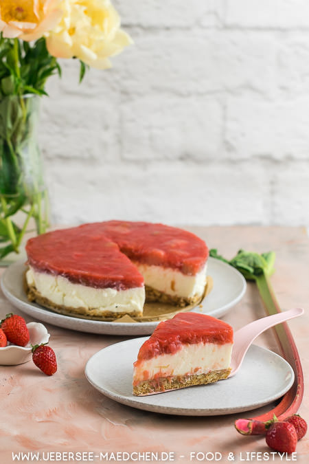 Rhabarber Kasekuchen Mit Erdbeeren Und Butterkeksboden