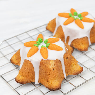 Bei einem Osterfrühstück werden die Mini-Gugelhupfe gleichzeitig zur Deko und verwandeln den Frühstückstisch in eine schöne österliche. Lecker schmeckt beispielsweise ein Karottenkuchen aus Rührteig mit fein geraspelten Möhren Zimt und einer köstlichen Frischkäse-Creme als Belag.